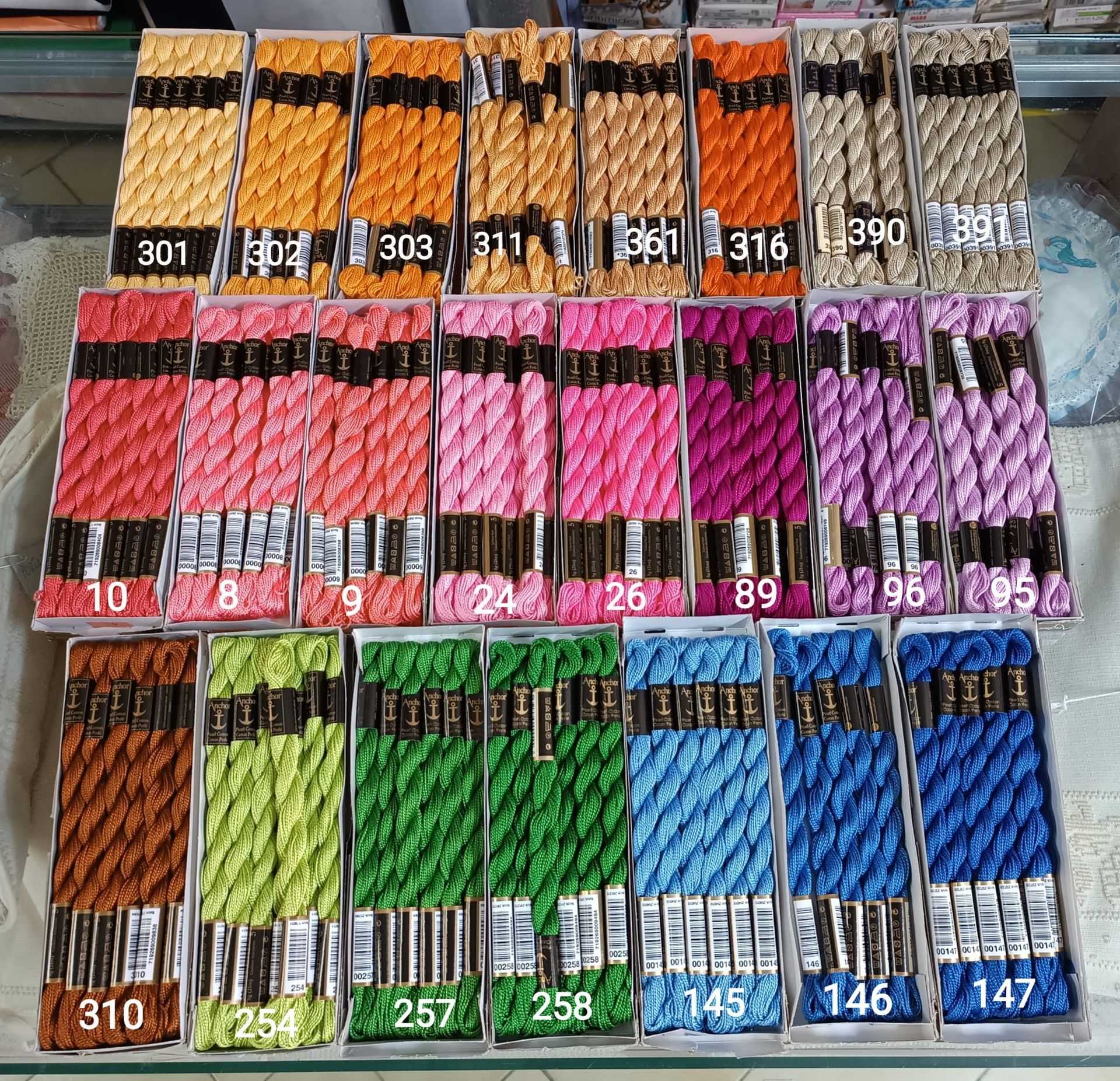 Scopri la nostra vasta gamma di filati per ricamo, disponibili in diverse tipologie per ogni esigenza creativa. Dal cotone mouliné al filo da ricamo in seta, fino ai filati perlati e sfumati, offriamo materiali di alta qualità per realizzare dettagli raffinati e decorazioni uniche su tessuti e accessori.